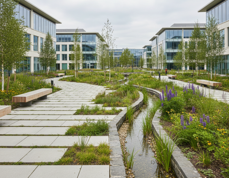 We translate site understanding into clear, deliverable designs. Ecological systems are integrated with infrastructure, access, drainage, and hard landscaping to ensure they function as part of the whole development.
